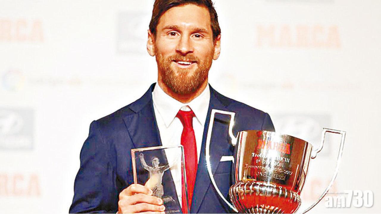 西班牙《馬卡報》周一舉行頒獎禮,巴塞隆拿球星美斯(圖)當選上季西甲最佳球員,第五次獲得這個以皇馬名宿迪史堤芬奴命名的獎項,他同時以37球而第四次成為西甲神射手。美斯領獎時先感謝隊友,並指個人獎項不及球隊錦標重要;他又期望於周六的國家打吡擊敗皇馬,進一步增加西甲的領先優勢,過一個開心聖誕。
