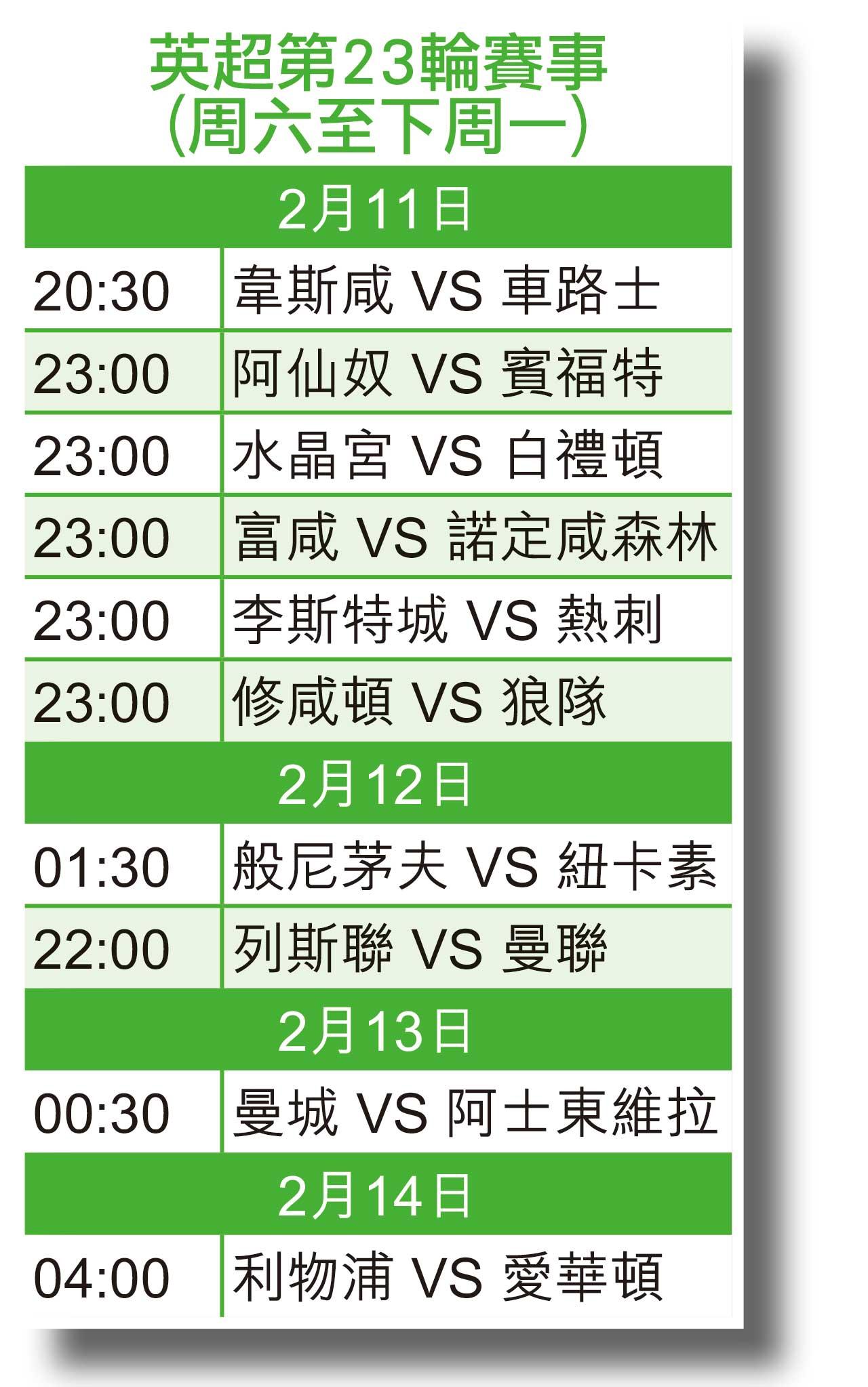 球迷如不善忘,還記得上季英超揭幕戰,阿仙奴作客吞當時升班馬賓福特兩蛋,賽後更被對手箭頭艾雲東尼在網上發文嘲笑;「兵工廠」其後發憤圖強,之後英超兩鬥賓福特全勝,包括今季首循環作客大勝3比0時,在完場前更換入15歲的中場旺尼爾,似是主帥阿迪達要反諷對手,令這兩支倫敦球會交手,增添不少話題。