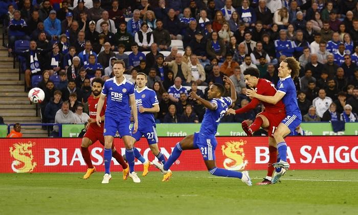 面對仍有機會爭取前四資格的紅軍,李斯特城在33分鐘先失守,防線遲遲未能解圍,被紅軍截得後,傳到右路的穆罕默德沙拿(Mohamed Salah),禁區頂再長傳遠柱的居迪斯鍾斯(Curtis Jones),為利物浦打開紀錄。3分鐘之後沙拿再一次傳予鍾斯,後者禁區內射入,球證之後翻看VAR後證實未有越位,入球有效,令紅軍半場領先2:0。