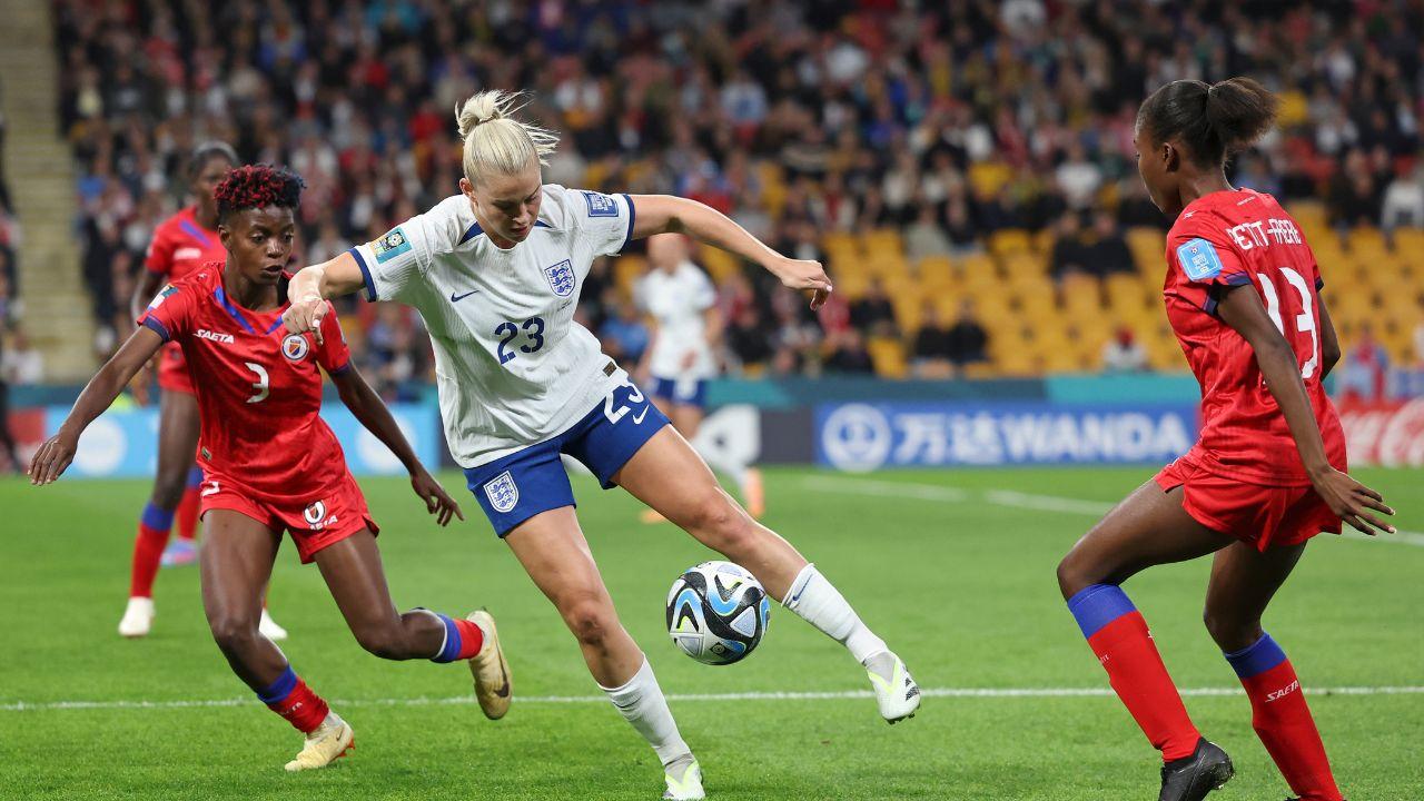 原以為上仗遇海地女足,可輕易全取3分的「三獅女兵團」,結果表現在水準之下;上半場只靠對方球員在禁區犯手球,由中場史丹維(Georgia Stanway)「補中」12碼得手,先開紀錄。海地女足不乏入球機會,只是英格蘭女足門將艾普斯(Mary Earps)最終化險為夷,為「三獅」錄得第6次參賽決賽周以來,第3次在首戰贏波,表現例慢熱。