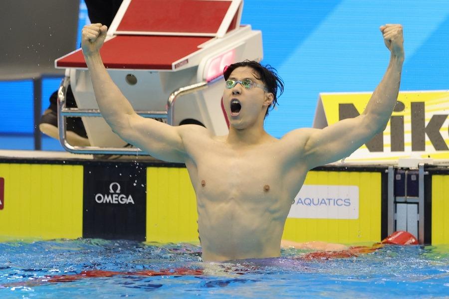 在世錦賽包攬三面蛙泳金牌,覃海洋強勢成為世界「新蛙王」。(圖片來源:視覺中國)