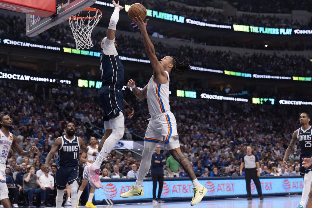 至於西岸頭號種子的雷霆,在達拉斯卻上演絕地反擊戰。球隊在全場多數時間落後之下,反勝獨行俠,將場數追平2:2。雷霆在這場比賽,首節已被拉開至14分,而之後獨行俠都一輕領先直到最後一節。雷霆在第4節餘不夠6分鐘的時間,憑基爾謝奧斯阿歷山大(Shai Gilgeous-Alexander)的爆發,打出一段9:0攻勢,當中基爾謝奧斯阿歷山大取得6分、2個籃板、1次助攻及1次的封阻,令球隊一口氣由落後6分變反超3分。取得領先的雷霆之後守得住優勢下,以100:96勝出。