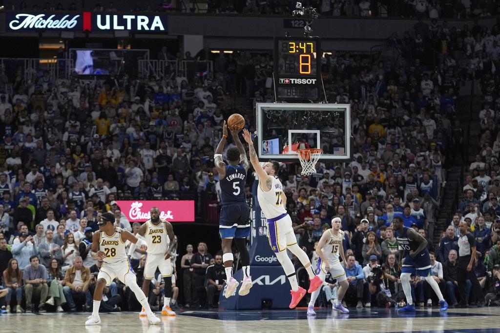 上仗作客再負木狼,湖人今場在第1節由當錫(Luka Doncic)取下13分,加上勒邦占士(LeBron James)的9分,一度拉開過10分,不過木狼第2節末段收窄了比分下,半場湖人僅領先61:58。第3節湖人有八村壘、當錫及列維斯(Austin Reaves)交出雙位數得分,令湖人領先過最多12分。不過第4節湖人命中率大減,整節他們18次起手僅入5球,而「蟻人」的艾華士(Anthony Edwards)個人攻入了16分。艾華士今場就為木狼取得43分,湖人的當錫雖然也有38分,勒邦占士也有27分、12個籃板及8次助攻,可是也無補於事。