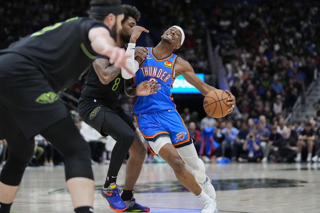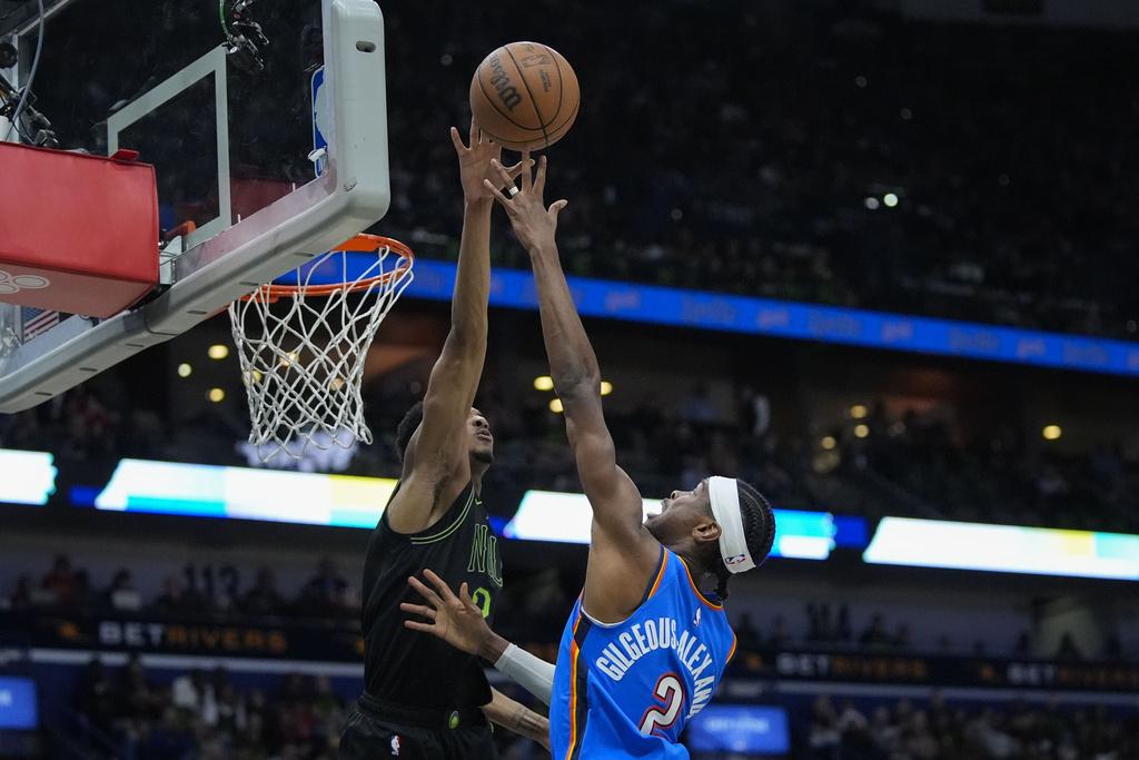 至於另一支西岸球隊的雷霆,作客再戰鵜鶘。雖然對手迫到19次互換領先及18次平手,但在第4節的最後8分50秒,雷霆以一波10:2的攻勢將比數拉開,自此鵜鶘都無法追回差距,結果雷霆再處多場97:89,以場數4:0大勝對手晉身西岸四強。西岸四強餘下席位就只有賽和2:2的洛杉磯快艇與達拉斯獨行俠。