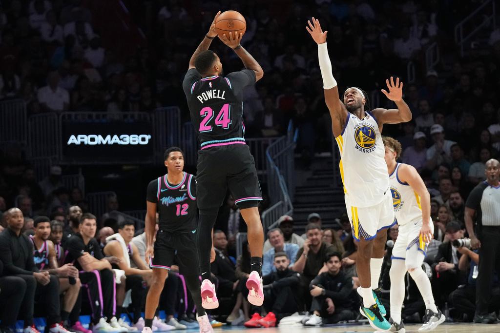 勇士連續9日6場的作客旅程去到最後,隊中最高薪酬的4位居里、畢拿、格連以及古明加(Jonathan Kuminga)齊齊因傷,缺少這4位違1.62億美元的球星,波森斯基(Brandin Podziemski)成為球隊得分最高一員,他今場為勇士貢獻20分及8個籃板。然而勇士5個正選也只有他取得雙位數得分,新秀的威爾李察(Will Richard)正選出場18分鐘未取得1分。熱火今場在最多領先16分下,以110:96勝出,諾文鮑維(Norman Powell)為熱火攻入最多的25分,熱火贏波後,今季主場錄7勝1負。