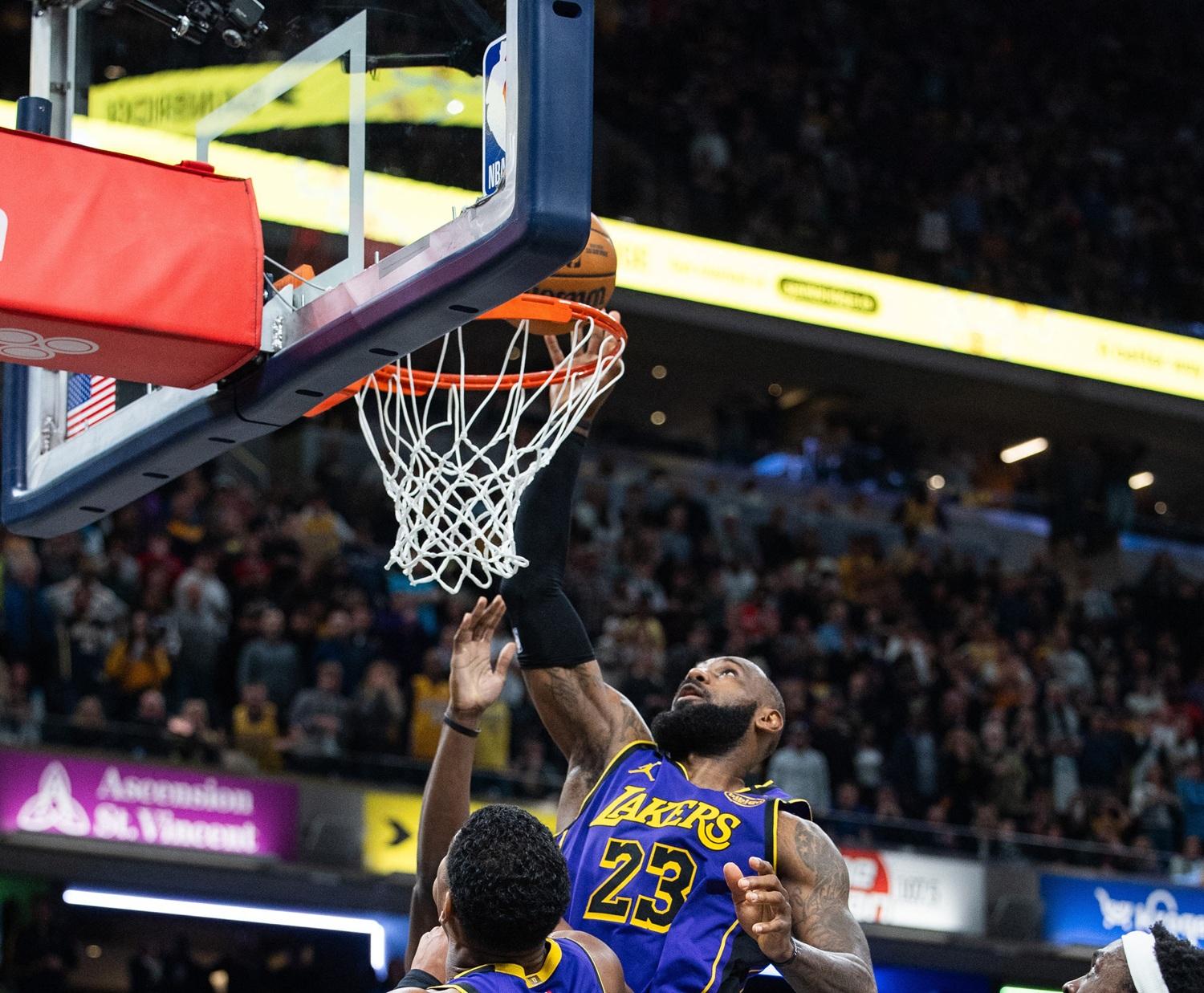 勒邦占士(LeBron James)復出後再次帶領洛杉磯湖人重回勝軌,在球隊作客印第安納溜馬的比賽,「大帝」在最後一擊為湖人補籃,協助球隊以120:119險勝,同時也將自己連續在NBA取得雙位數的場數增至1,283場。