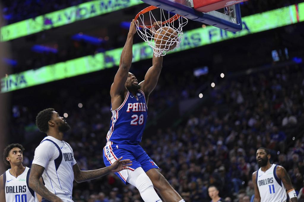 安比休養多時再為76人取得「三雙」,帶領球隊小勝獨行俠。(美聯社)