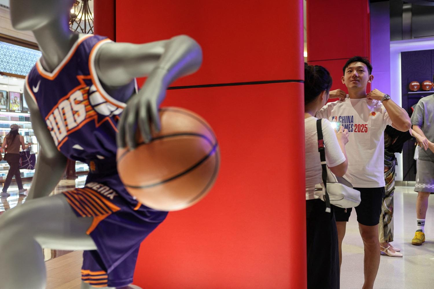 NBA中國賽在澳門威尼斯人的攤位。(路透社)