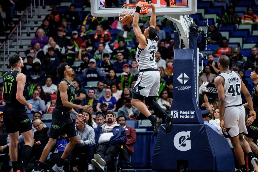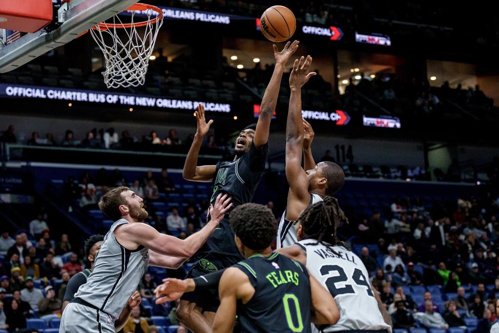 兩隊其實都缺少隊中當家球星,雲班耶馬在上月中以來就缺陣,而鵜鶘也缺少錫安威廉臣(Zion Williamson)。然而在夏利臣班尼斯(Harrison Barnes)及榜眼夏柏的表現下,馬刺在最多拉開過25分下,半場領先77:57。然而鵜鶘第3節開始就打出一段9:0的攻勢追近,加上今年選秀第13順位的戴歷昆恩(Derik Queen)在這節個人獨取21分,為鵜鶘用一節的時間反超。在第4節,昆恩在最後30秒為鵜鶘反先132:131,不過夏柏的上籃再為馬刺超前,加上霍斯最後階段獲得2個罰球並全中,令馬刺以135:132反勝。