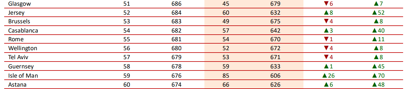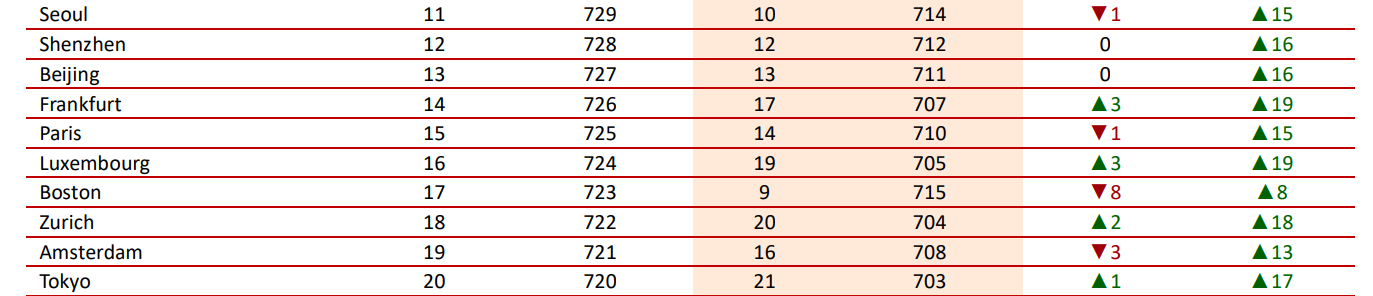 自2018年以來一直排名第一的紐約,於是次評分為763分,較上次增加3分;倫敦則以744分排第二,分數增加13分;新加坡及香港同樣較上次增加19分,得分的分別為742分及741分。