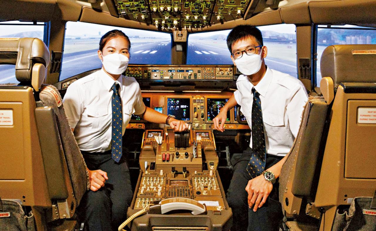 陳梓盈(Cathy)昨笑指,父母當年看過《衝上雲霄》後便對航空業感興趣,數年後,更安排當年14歲的Cathy參加與航空相關夏令營;在活動中登上直升機,翱翔天際難忘感覺令她對飛機著迷。大學修讀工程學的她,期間再參與國泰港龍航空飛行證書計劃,對駕駛艙內的工作環境印象深刻,因此立志成為機師。今年國泰重啟航空見習機師培訓計劃,Cathy為當中一員,並預計明年完成培訓,成為二副機師。