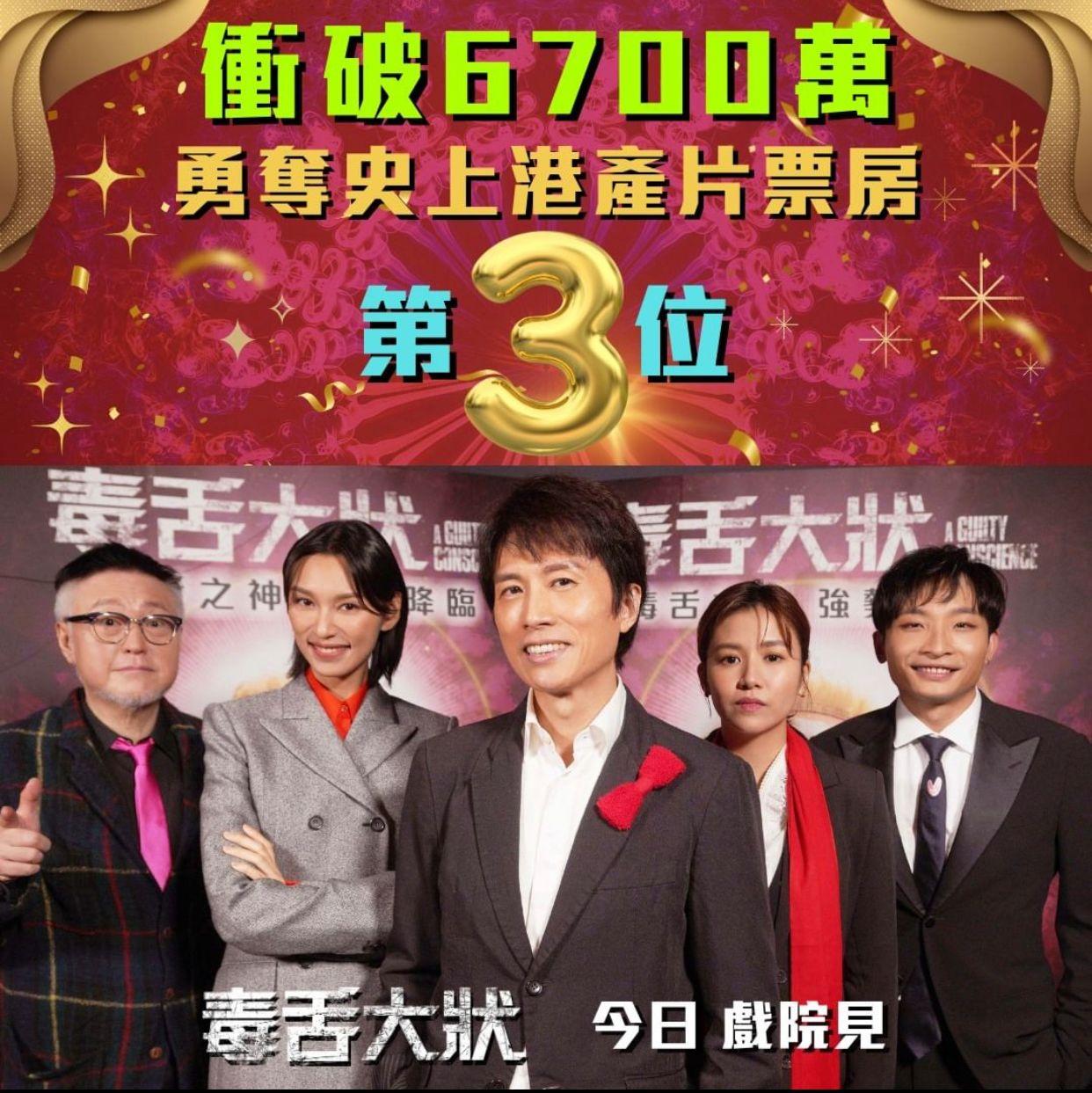《毒舌大狀》票房已經衝破6700萬,勇奪史上港產片票房第3位。