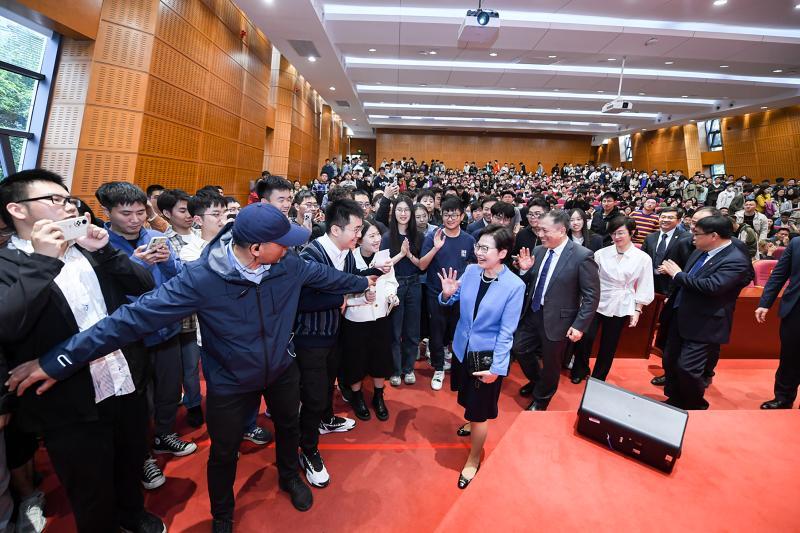 前特首林鄭月娥訪上海大學交流。(上海交通大學)
