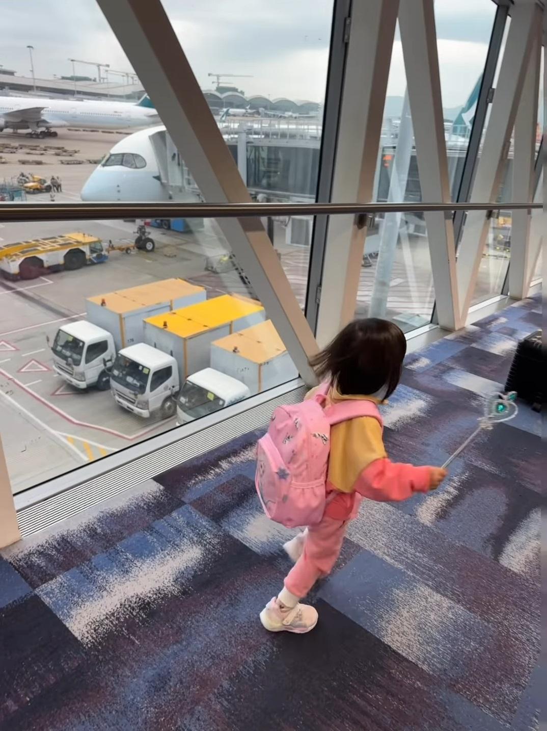 楊茜堯在社交平台透露,剛過去的復活節與老公、囡囡小珍珠及家姐楊卓娜一家到日本旅行。她在IG上載當日搭飛機的片段和照片,片中見到小珍珠背住粉紅色背囊,手持仙女棒,跳跳紮的跟爸爸登機。