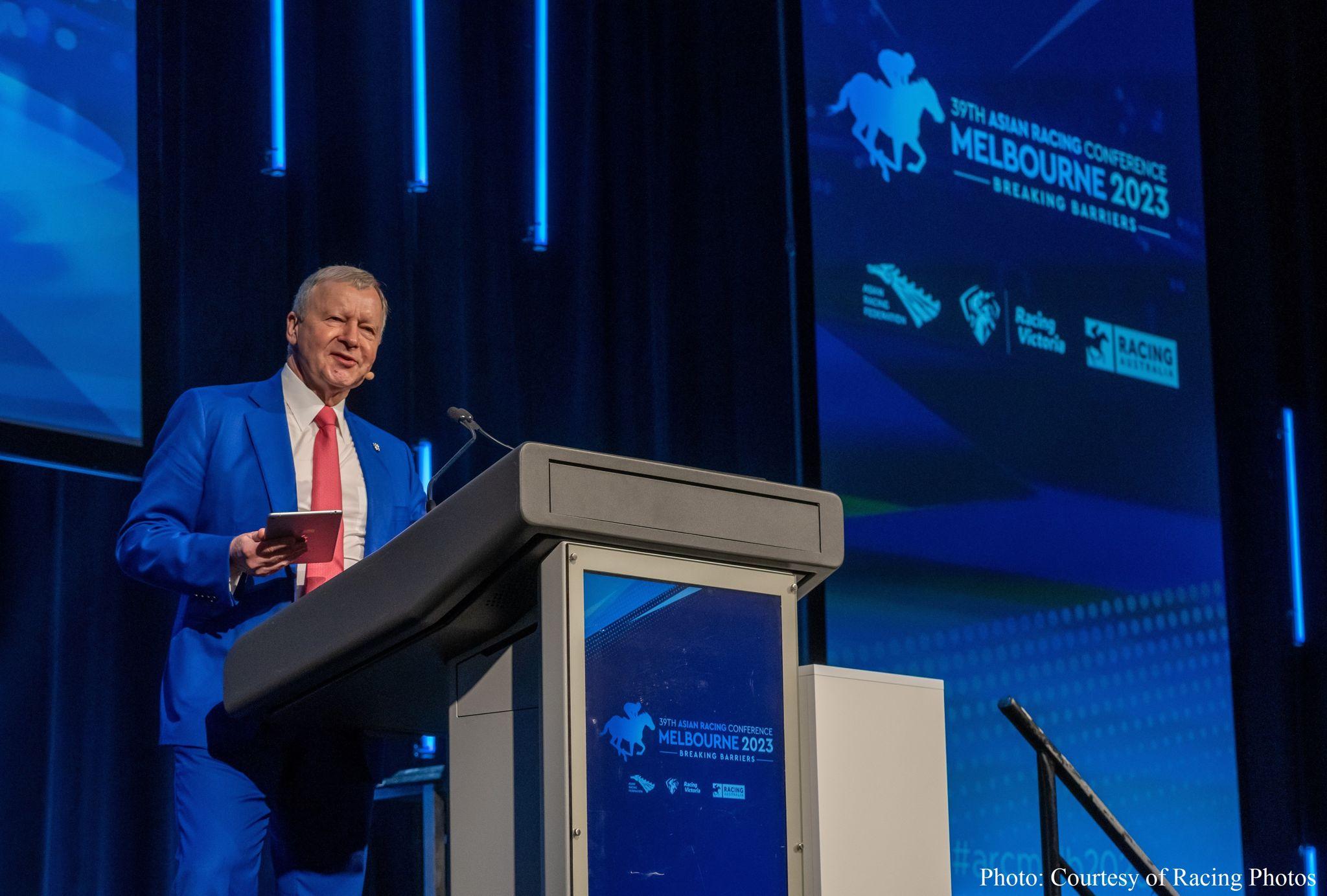 馬會行政總裁應家柏以亞洲賽馬聯盟主席身份主持會議。 (Racing Photos提供)