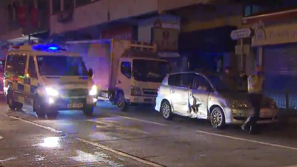 黃大仙寶馬連撞兩車拒受查,「過期肥學神」棄車跑百米被捕。(電視截圖)