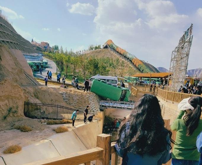 根據網上片段,觀光車翻側壓毀水溝木欄杆前的路段,是一段落斜轉彎位。出事後,車上多名遊客跌落五、六米深的水溝。有目擊者表示,當時是離園高峰期,大部分觀光車都坐滿遊客。當地政府尚未公布出事原因。