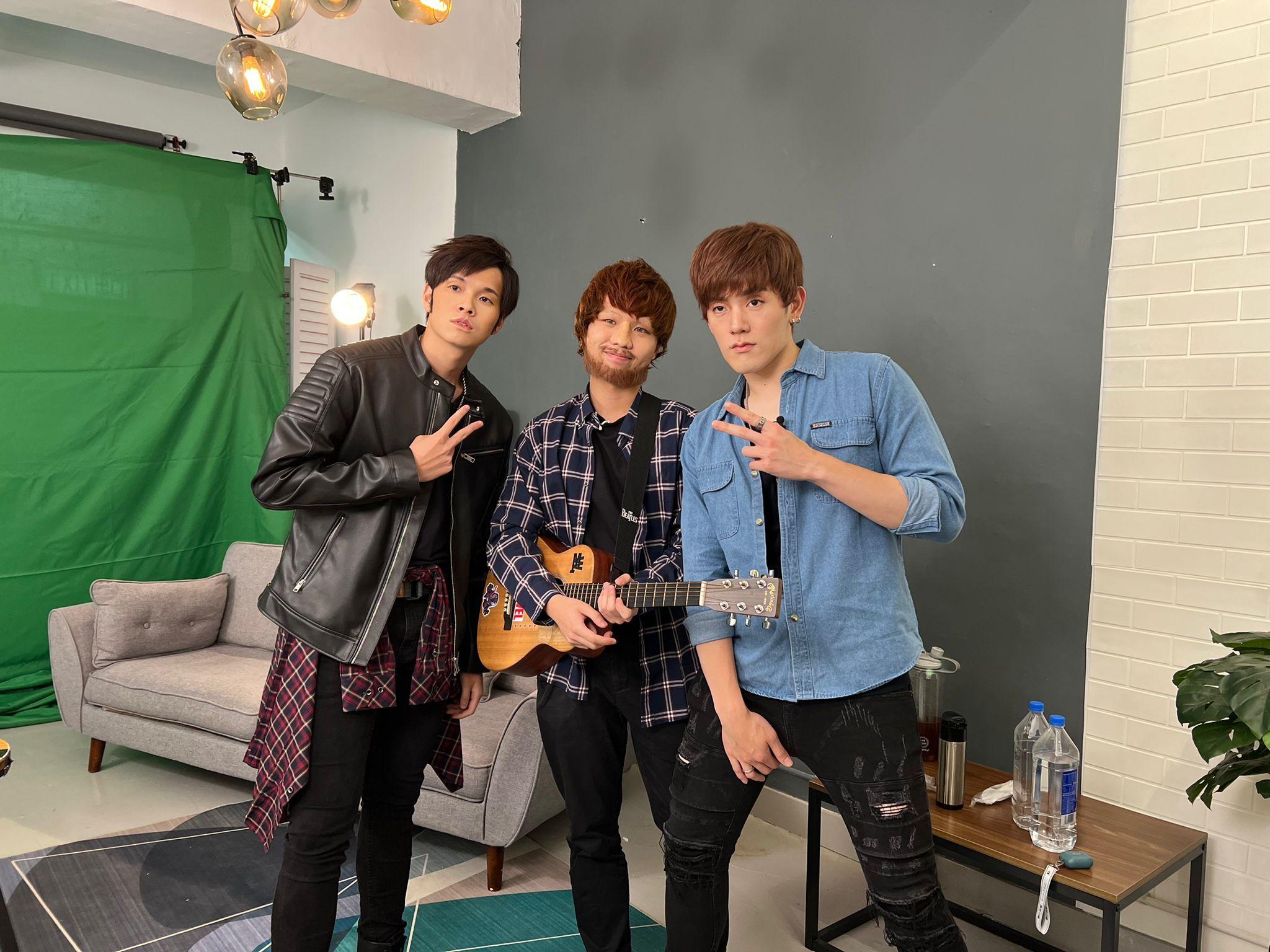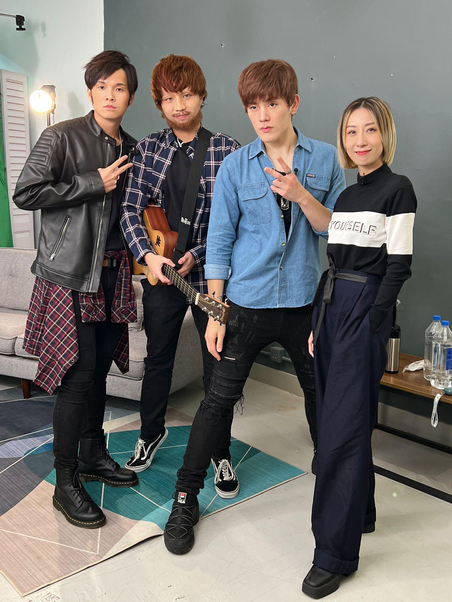 泳兒跟黎展峯(左一)、黃明德(中)、洪助昇(右二)拍節目。