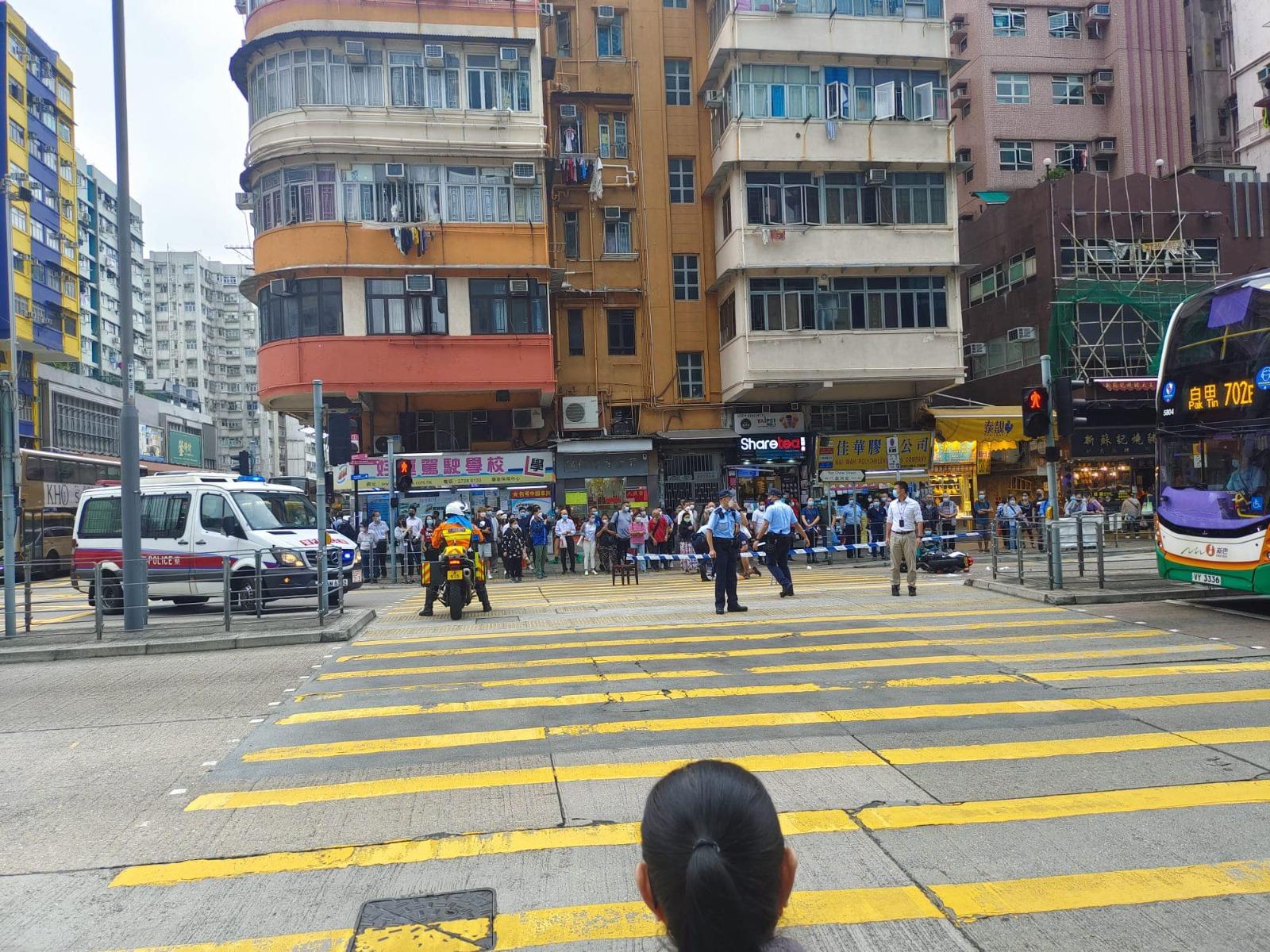 深水埗鐵騎士撞倒過路婦 雙雙倒地受傷。(fb「突發事故報料區」圖片)