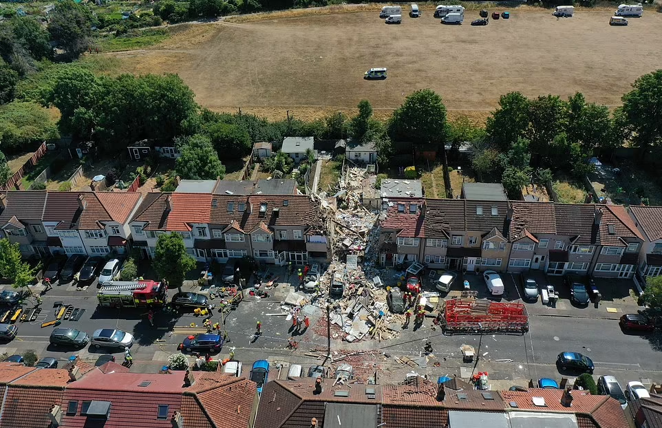 現場是倫敦南部克羅伊登(Croydon)附近Thornton Heath的一間排屋,周一(8日)早上7時許發生爆烈爆炸,有居民形容巨響「如引爆炸彈」、「是歷來聽過的最大巨響」,並見一名婦人及子女在瓦礫中逃出,雙手染血,婦人尖叫說「我還有一個女兒在裡面」。6輛消防車及40名消防員趕抵,附近逾100名居民須疏散。最終證實婦人的4歲女兒罹難,另有3人在意外人受傷。