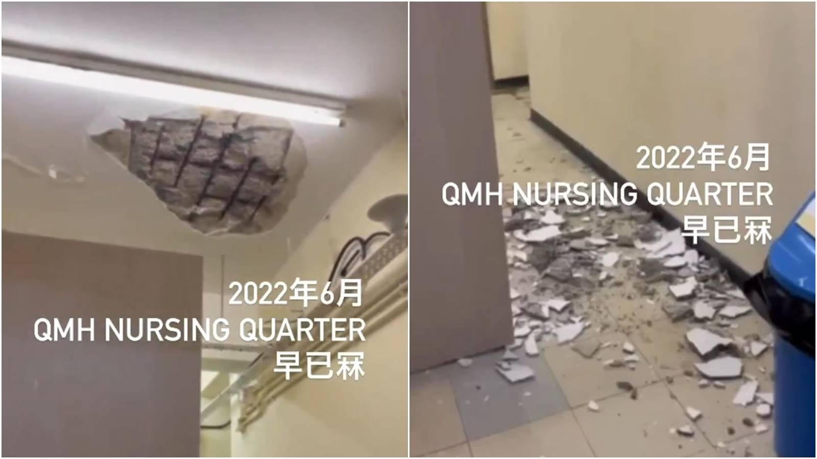 瑪麗醫院護士學校去年6月天花冧石屎。(IG短片截圖)