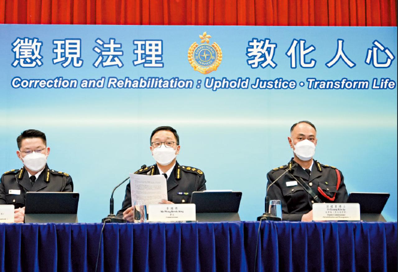 懲教署召開記者會總結去年工作,指去年新收納入懲教院所的人次(包括定罪、還柙及被羈留人士)較2021年跌一成三,由15,311人次下跌至13,246人次。涉及反修例事件及港區國安法罪行達829人次,按年跌一成六,截至去年底,相關在囚人口則有522人,按年升26%。