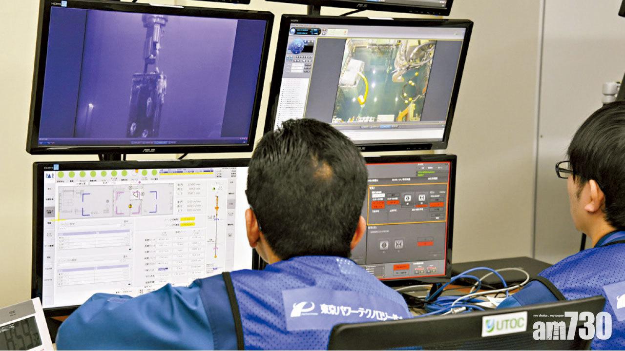 工作人員在500米外操控室遙控起重儀器,從燃料池內移走核燃料棒。(美聯社)