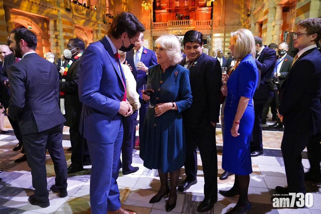 卡米拉在接待會上與加拿大總理杜魯多交談。(美聯社)