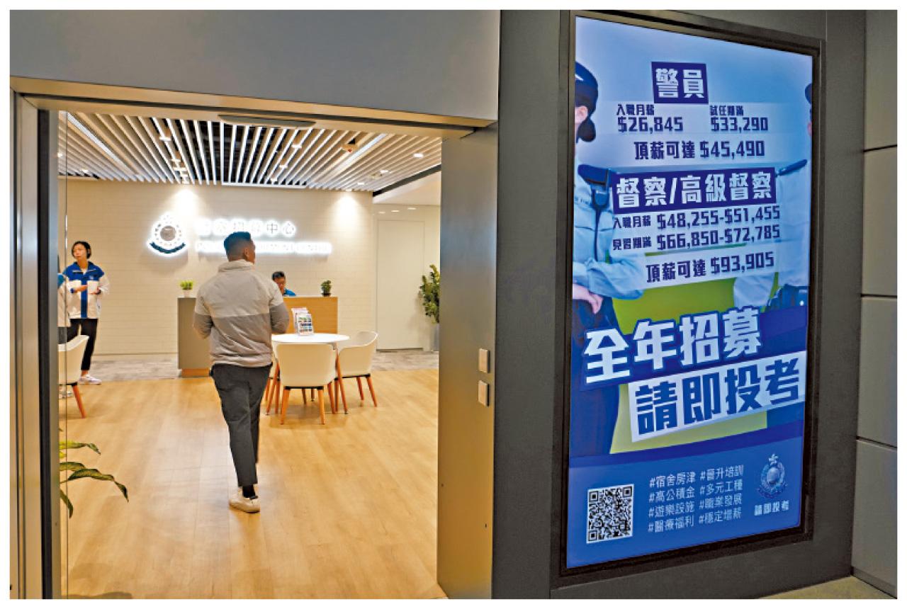 昨有市民到警察招募中心了解投考詳情。(陳奕釗攝)