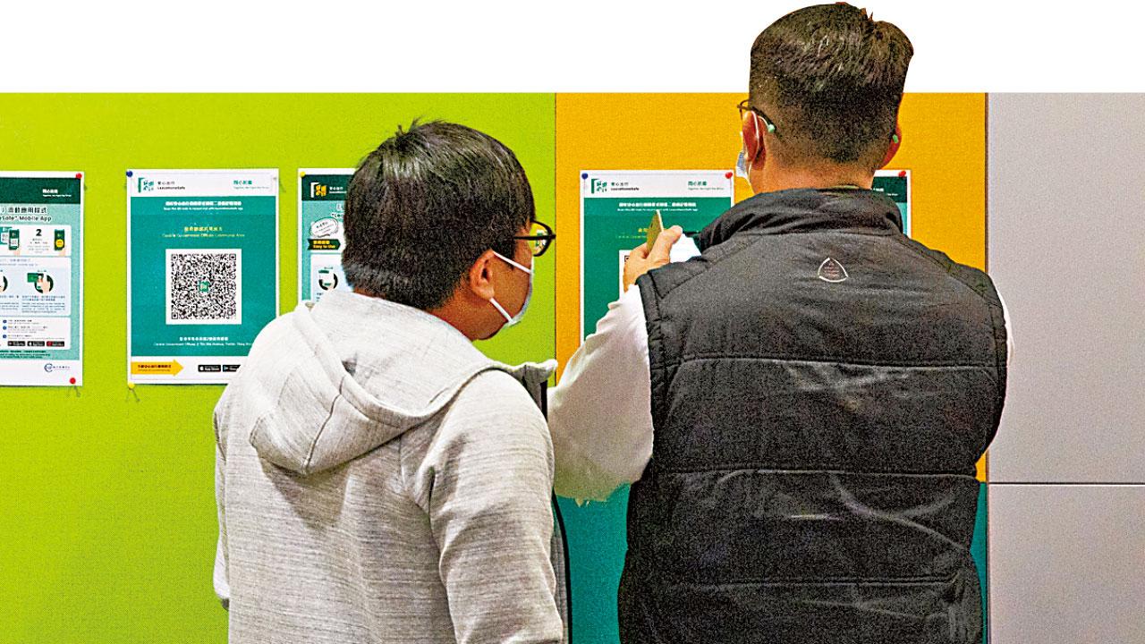多個處所現時均貼有「安心出行」場所二維碼。(資料圖片)