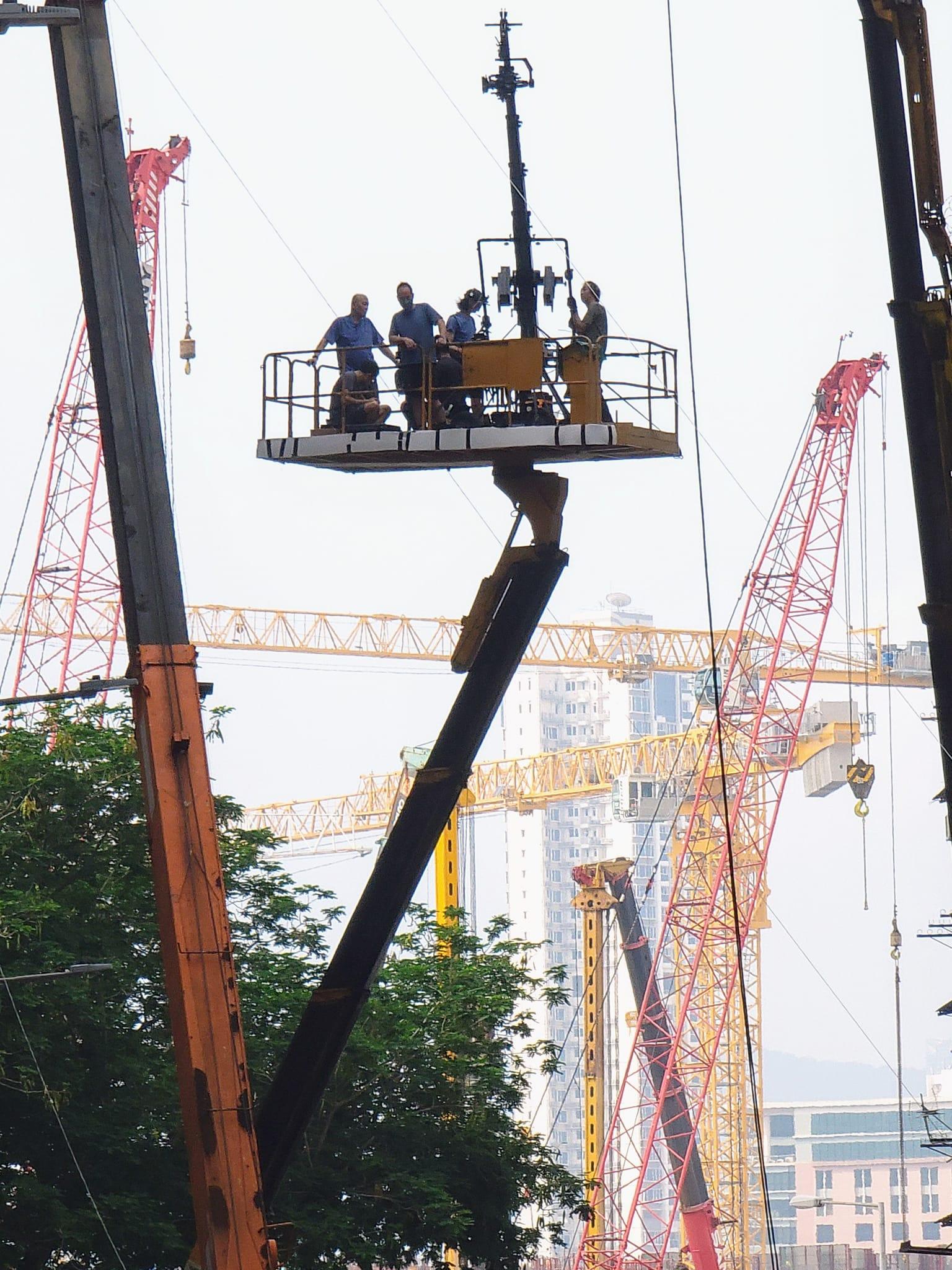 另外,有市民拍到工作人員早前拍攝電影的情況,見到在高空工作的人員,未有繫上安全帶。根據勞工處的指引,工作人員必須佩戴安全帶,並繫穩在製造商指明的位置。結構工程師倪學仁相信事件涉及操作不當,工作台有可能超重,導致升降台失去平衡。他指,升降台駕駛室有荷載表,提醒操作員升降台不同角度的荷載上限,而升降台上的人也必須戴上安全帽,佩戴安全帶,並扣住圍欄。