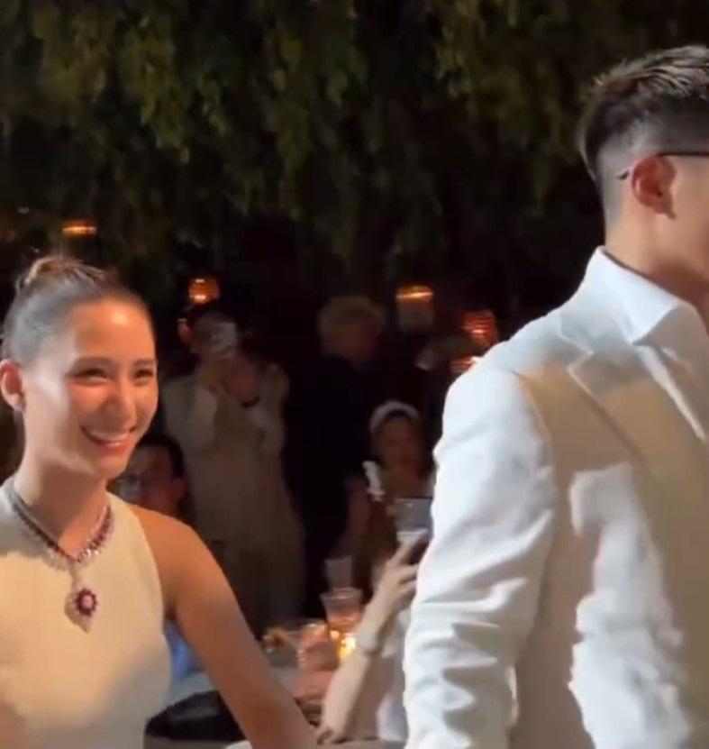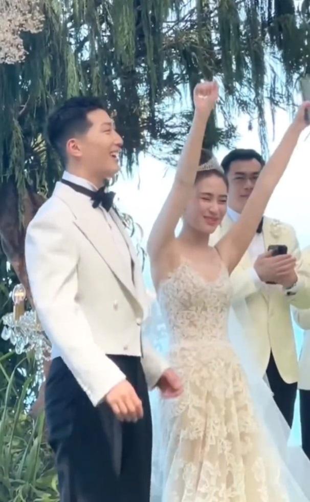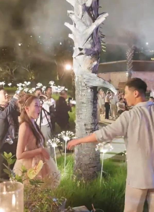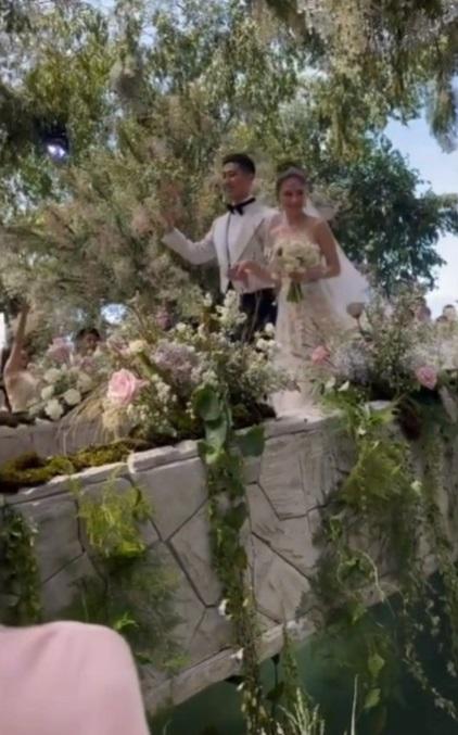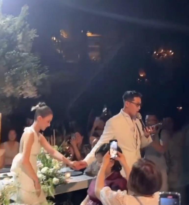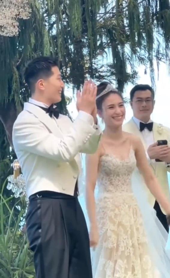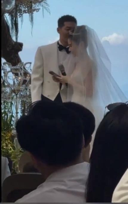已故賭王何鴻燊三房千金超蓮與大陸藝人竇驍昨日在峇里舉行盛大婚禮,今日網上流出婚禮現場的片段,其中一條長達6分半鐘的片段中見到超蓮由大舅父陪同出場,其後竇驍揭開超蓮的頭紗,他細心為超蓮整理頭髮,然後再交換戒指。