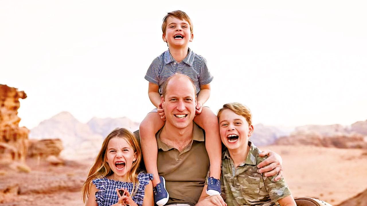 英國肯辛頓宮趁昨日父親節,發布威廉王子與大仔喬治王子、二女夏洛特公主及細仔路易王子,在約旦度假時所攝的照片(圖),堪稱「完美父親照」,獲不少網民讚賞。