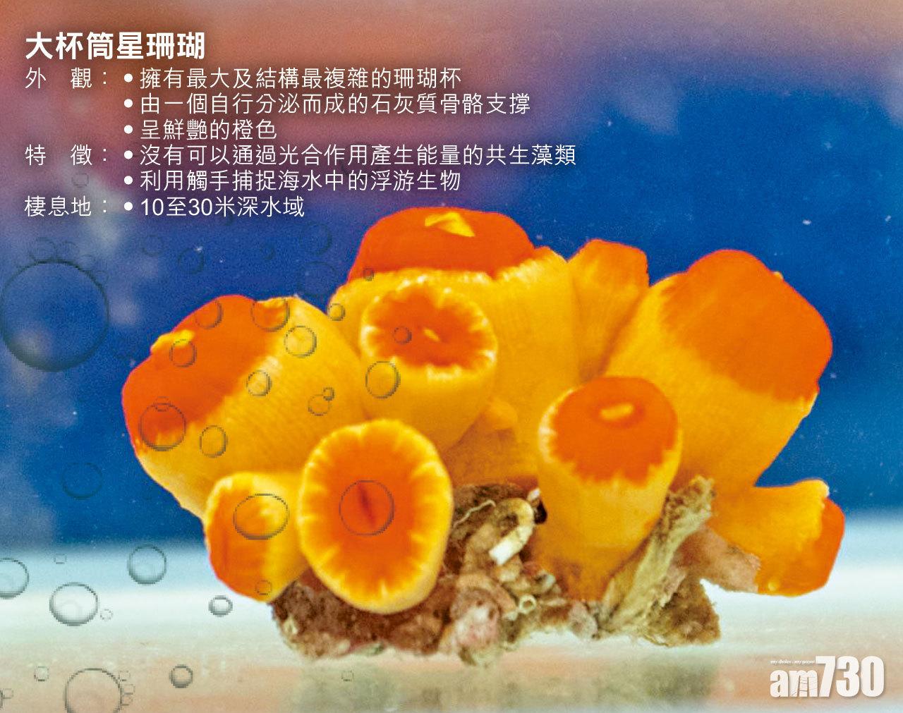 按生態功能,珊瑚分為造礁珊瑚和不可造礁珊瑚;不可造礁珊瑚即體內沒有可以通過光合作用產生能量的共生藻類。今次新發現的「大杯筒星珊瑚」屬不可造礁珊瑚,須利用觸手捕捉海水中的浮游動物,以獲取能量和營養。