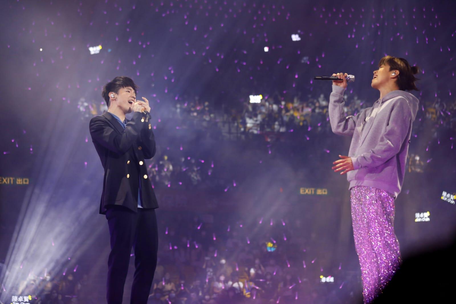陳卓賢擔任張敬軒尾場第二位嘉賓,合唱《騷靈情歌》。(林俊源攝)