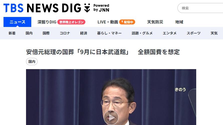亦有自民黨內部指出,有關的國葬應該要獲得7成的國民支持,並希望政府可以到國會作出解釋,並讓國民理解有關的決定。日本內閣官房長官松野博一在今日(15日)的記者會上,被問到有關安倍的國葬問題時,松野表示具體的日期及場地,以及規模將會與安倍的遺屬商討後再作出決定。