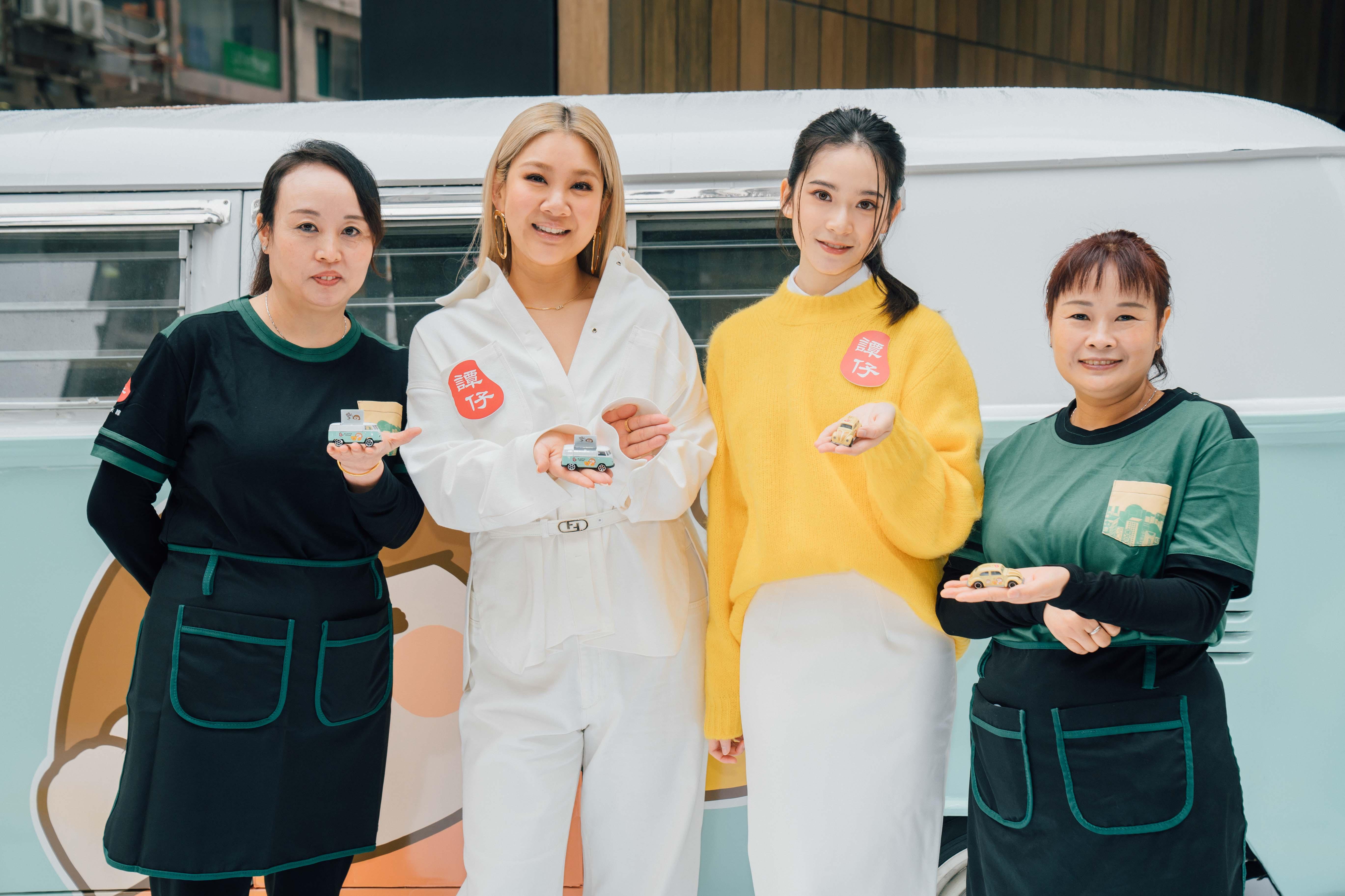 譚仔姐姐首席KOL紅梅姐和葵芳店店長菊姐,拿著譚仔車車送給Joyce及Cloud留念。