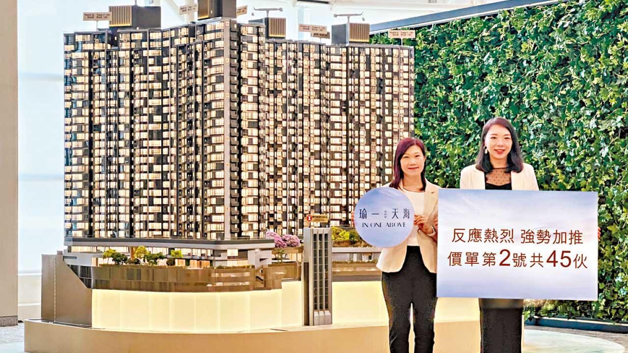 市場焦點落在一手市場,多個新盤昨日公布新部署。華懋集團與港鐵(066)合作發展的何文田瑜一第IA期「瑜一.天海」加推2號價單,涉45伙,涵蓋1伙一房、29伙兩房及15伙三房,實用面積327至960方呎。扣除最高15%折扣,折實價833.85萬至3,007.79萬元,折實呎價25,500至32,800元,折實平均呎價28,655元,與上周四推出的首張價單26,718元相比,高約7.2%。