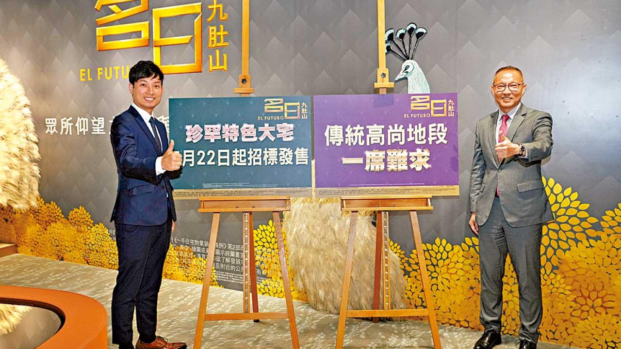 郭子威(右)指名日.九肚山迄今累沽189伙;左為詹勳榮。(陳奕釗攝)