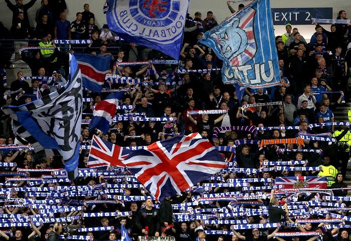 格拉斯哥流浪在無視歐洲足協的禁止,賽前播放英國國歌。(路透社)
