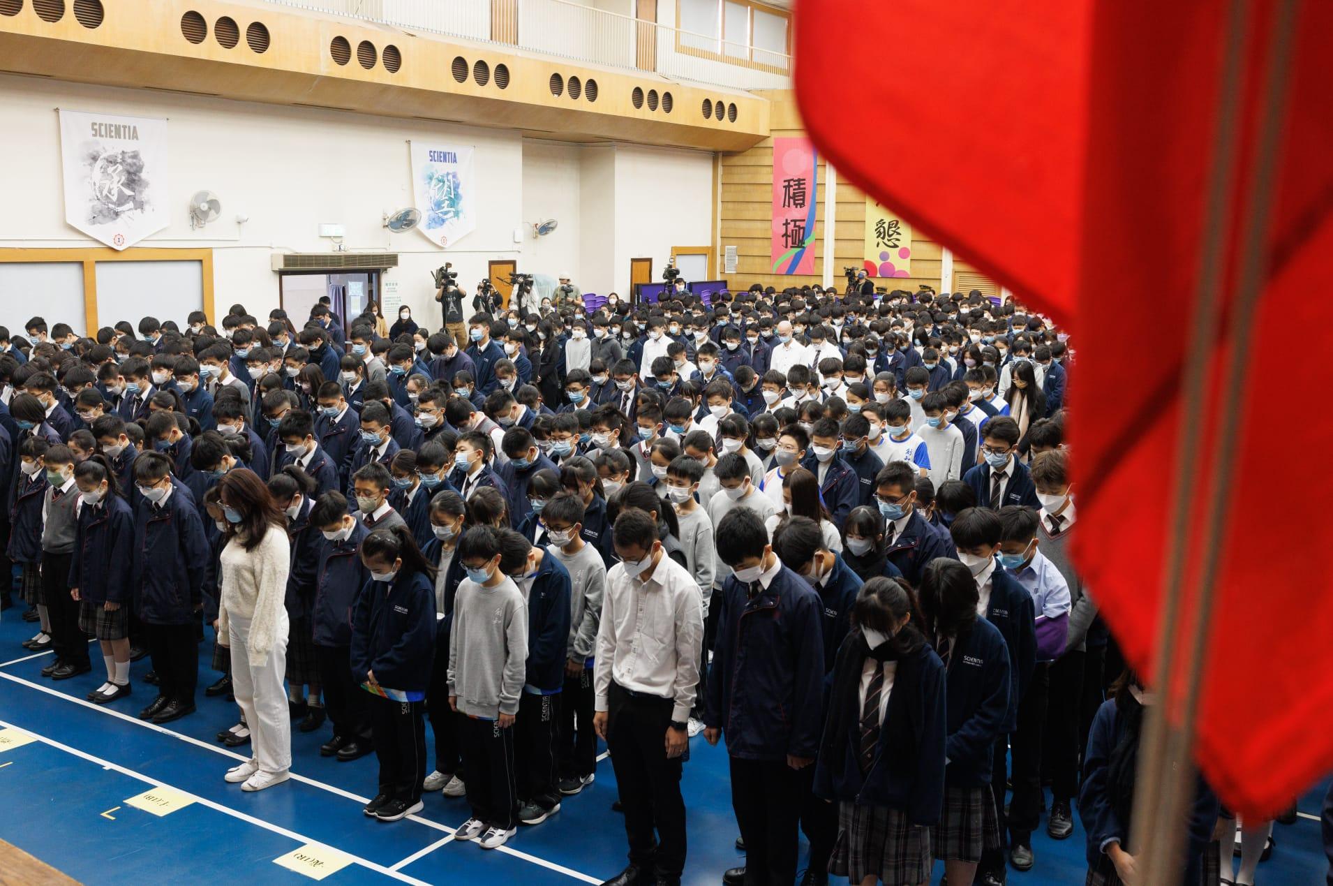 江澤民逝世|學校下半旗誌哀 師生默哀悼念。(蘇文傑 攝)