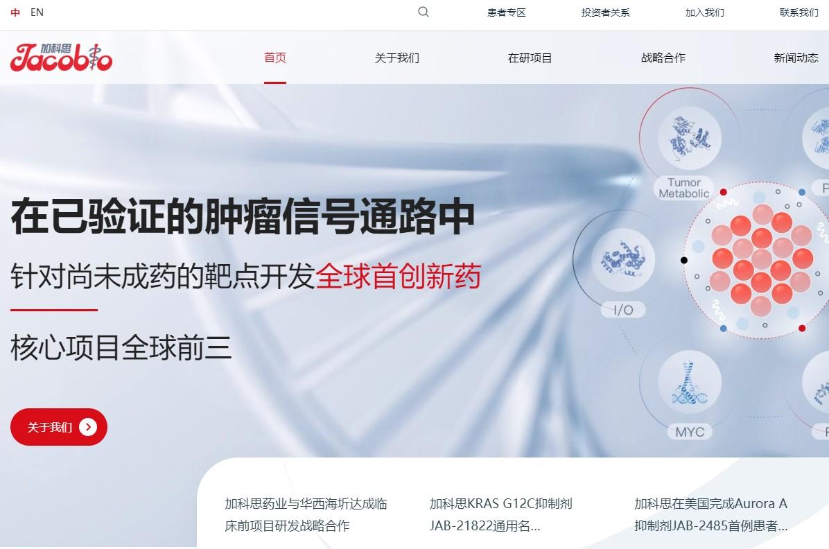 加科思藥業指在矽谷銀行的現金存款餘額不足40萬美元。圖為其網站。
