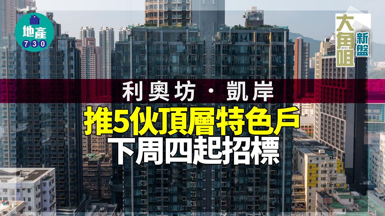 恒基地產(012)大角咀利奧坊.凱岸今日(16日)上載最新銷售安排,推出5伙頂層連平台及天台特色戶招標,招標期由下周四(25日)至10月31日。