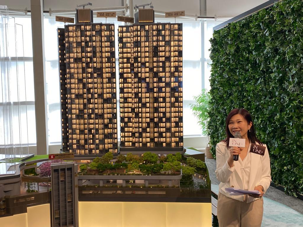 瑜一1C今公布加推130伙,折實售價1,218.47萬元起,折實平均呎價29,348元。左為華懋集團銷售總監封海倫。