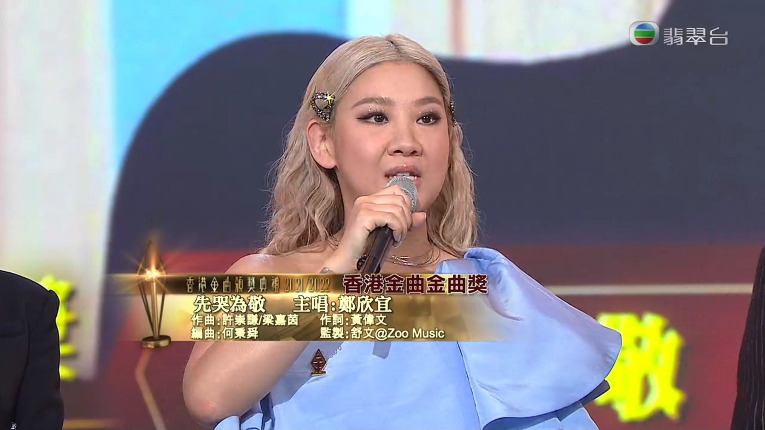 《香港金曲頒獎典禮2021/2022》率先頒發十首「香港金曲金曲奬」,得獎有欣宜的《先哭為敬》、炎明熹的《真話的清高》、曾比特的《我不如》、Edan呂爵安的《E先生連環不幸事件》、張敬軒的《俏郎君》、泳兒《荊棘海》、MC張天賦《記憶錦》、AGA江海迦的《City Pop》、衛蘭的《It's OK To Be Sad》及姚焯菲的《原來戀愛是這麼一回事》。