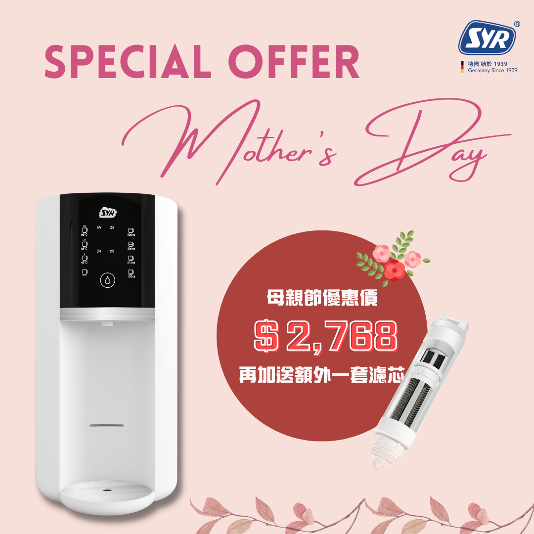 母親節禮物2023推介|德國SYR即熱RO純淨飲水機(CTRO-T50WH) 原價$4,187,母親節優惠$2,768 再額外送一套濾芯(可用一年)