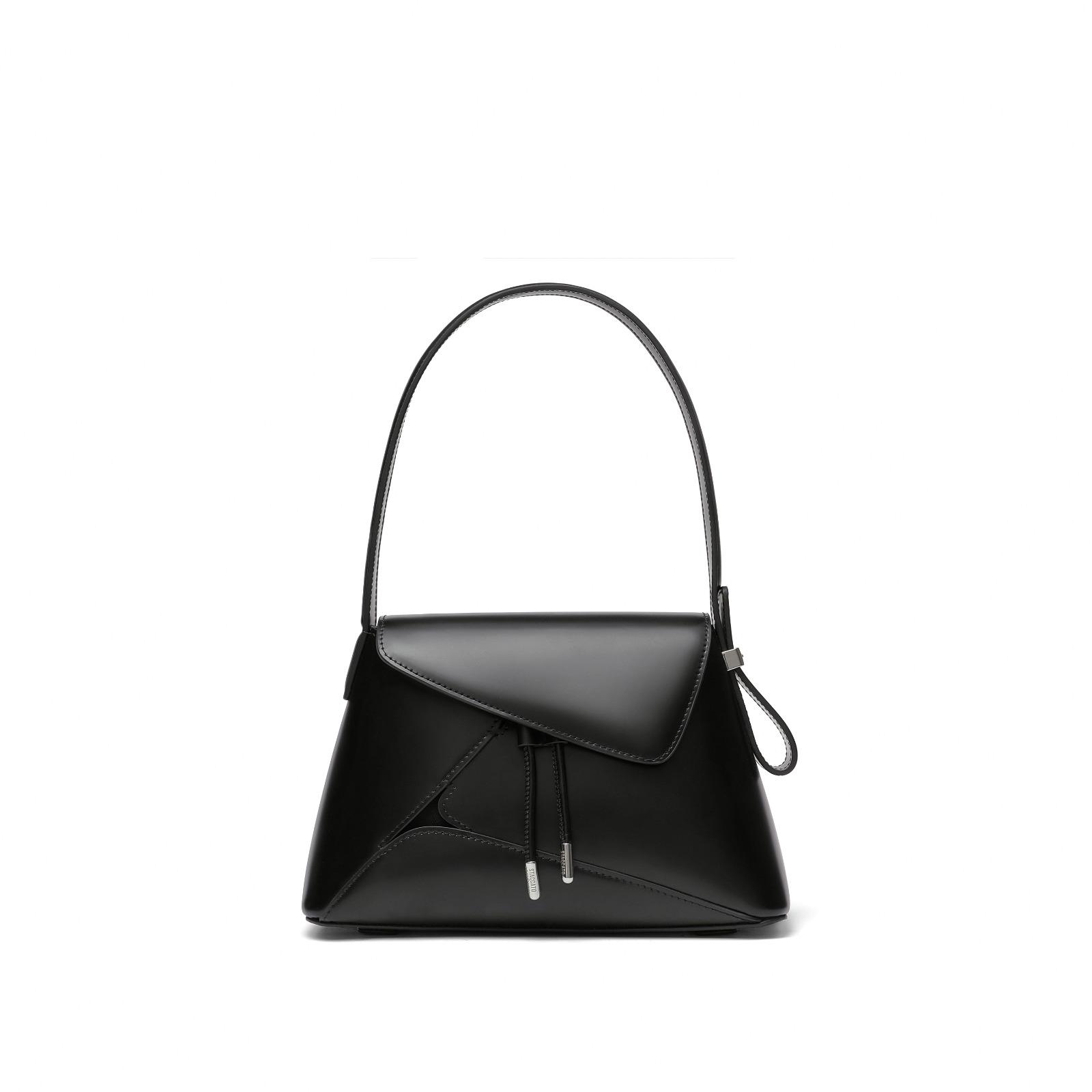 富有建築感的剪裁,將柔軟的質感皮面勾勒出不同花瓣層疊交合的形態。同色系棉麻抽繩內袋清新自然,配以搖曳的金屬扣及繩帶細節點綴。