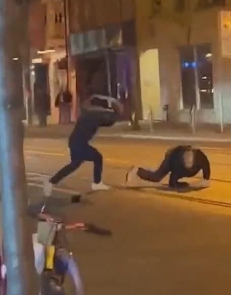 街頭起爭執竟用活蠎當皮鞭狂抽打,網民關注條蛇有無受傷。(Twitter)
