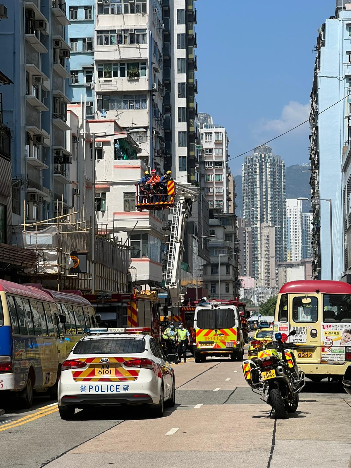 土瓜灣北帝街永德大廈下午近1時有人墮樓,倒臥大廈平台位置。消防及救護員現場,並升起雲梯將事主救下,當場身亡。警方正調查死者身份及墮樓原因。現場消息指,死者為一名年約40歲女子。