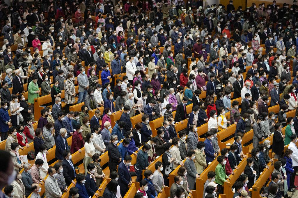 首爾一個教會周日舉行復活節聚會。(美聯社)